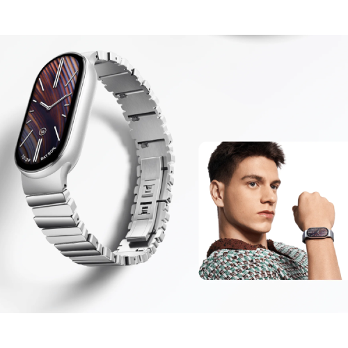 بندهای قابل تعویض با سیستم رهش سریع (Quick-Release) تنوع بینظیری ارائه میدهند: از TPU مقاوم در برابر عرق تا در رنگهای Midnight Black، Glacier Silver و Mystic Rose گرفته تا فلورورابر سفید مرواریدی و گزینههای لوکس مانند ابریشم بافته قهوهای پر یا فلزی مغناطیسی است. تصور کنید این دستبند را به عنوان یک گردنبند مد روز (Necklace Mode) استفاده کنید که این نیز ویژگی منحصربهفردیست که در رقبا نادر است، هرچند در این حالت ردیابی ضربان قلب و ورزش محدود میشود. این انعطافپذیری، Xiaomi Smart Band 10 را به مکملی بینقص برای استایلهای روزمره و ورزشی تبدیل میکند.